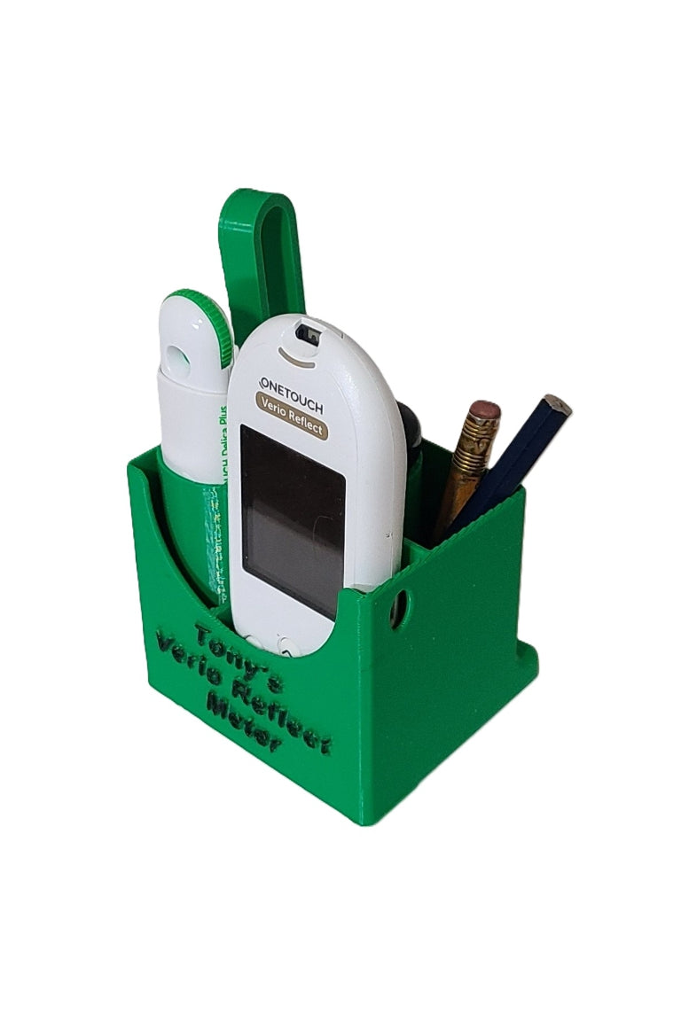 The Vario Reflect Diabetes Testing Meter Organizer is designed to keep your meter and supplies neatly arranged on any flat surface like a nightstand, countertop, or desktop. Its tailored compartments provide easy access and secure storage, helping you maintain an organized and clutter-free space for your diabetes management essentials.